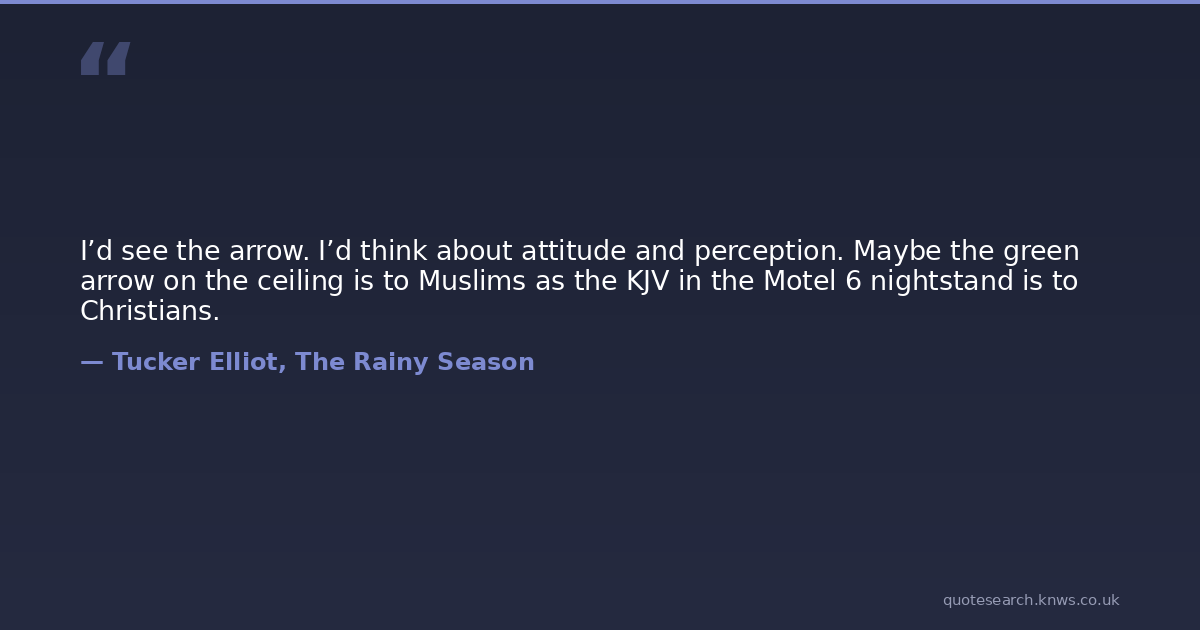 I’d see the arrow. I’d think about attitude and perception. Maybe the green arrow on the ceiling is to Muslims as the KJV in the Motel 6 nightstand is to Christians.