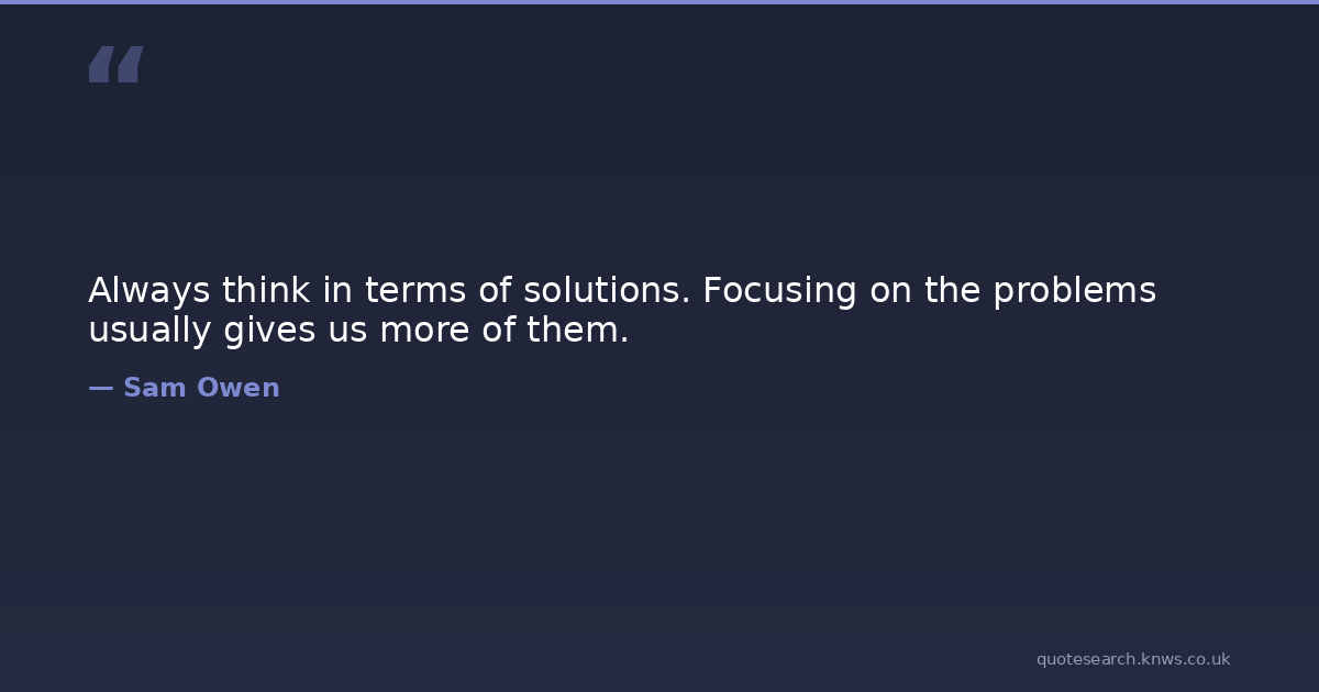 Always think in terms of solutions. Focusing on the problems usually gives us more of them. problem-focused problems solution-focused solutions thoughts Download Image Share on X Share on Facebook Copy Link