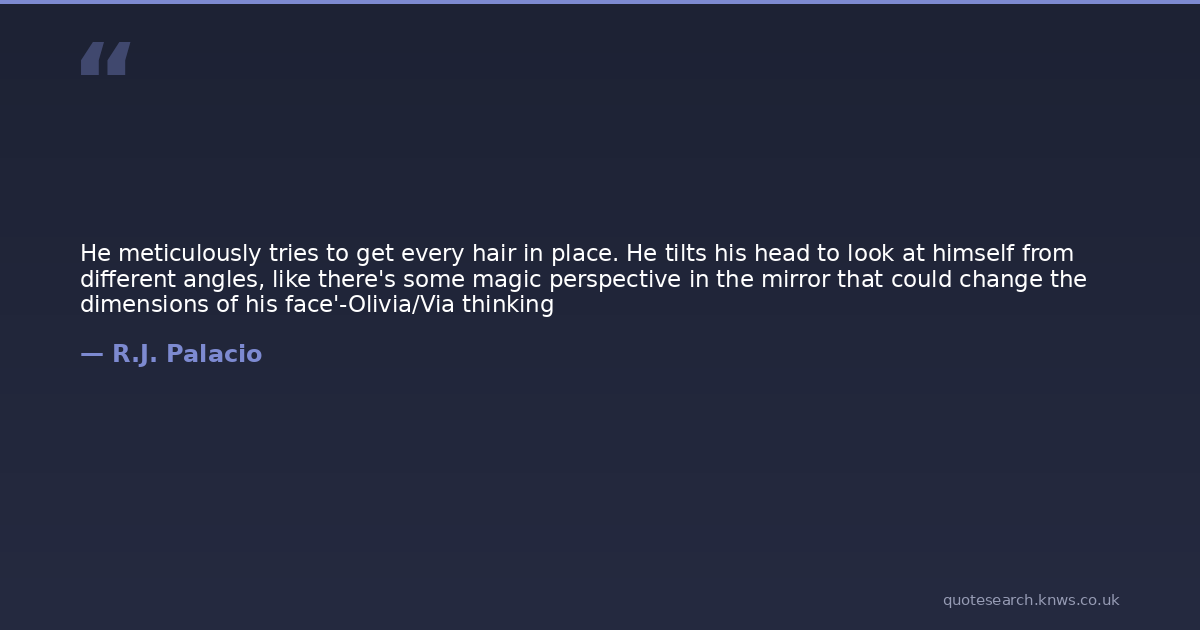 He meticulously tries to get every hair in place. He tilts his head to look at himself from different angles, like there's some magic perspective in the mirror that could change the dimensions of his face'-Olivia/Via thinking