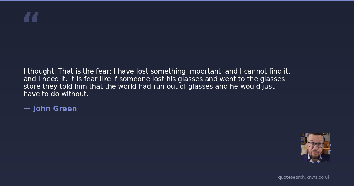 I thought: That is the fear: I have lost something important, and I cannot find it, and I need it. It is fear like if someone lost his glasses and went to the glasses store they told him that the world had run out of glasses and he would just have to do without.