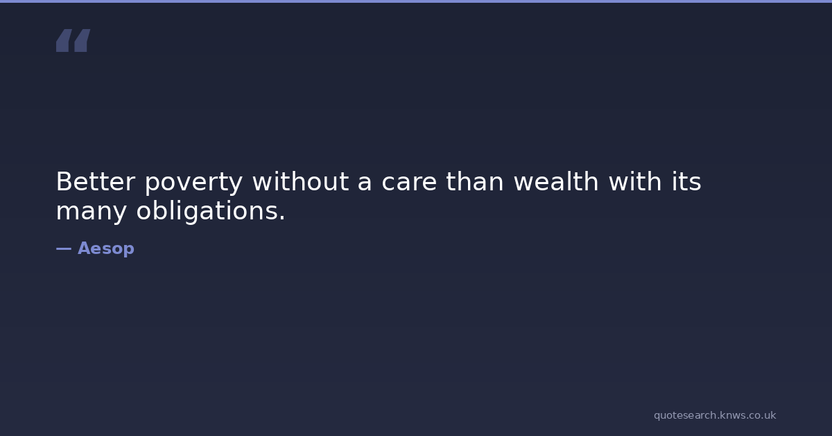 Better poverty without a care than wealth with its many obligations. carelessness obligations poverty wealth Download Image Share on X Share on Facebook Copy Link