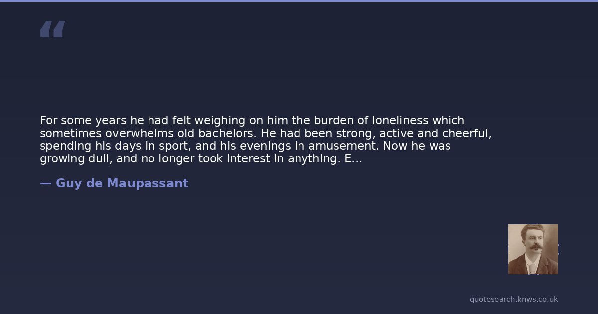 For some years he had felt weighing on him the burden of loneliness which sometimes overwhelms old bachelors. He had been strong, active and cheerful, spending his days in sport, and his evenings in amusement. Now he was growing dull, and no longer took interest in anything. Exercise tired him, suppers and even dinners made him ill, while women bored him as much as they had once amused him.