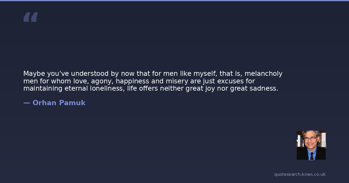 Maybe you've understood by now that for men like myself, that is, melancholy men for whom love, agony, happiness and misery are just excuses for maintaining eternal loneliness, life offers neither great joy nor great sadness.