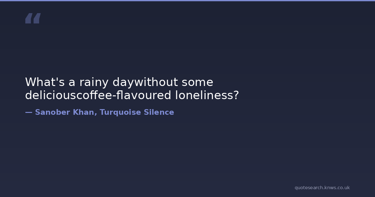 What's a rainy daywithout some deliciouscoffee-flavoured loneliness? alone coffee delicious flavor loneliness poetry poetry-quotes rain rainy-day solitude Download Image Share on X Share on Facebook Copy Link