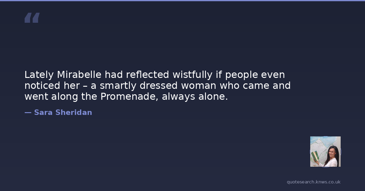 Lately Mirabelle had reflected wistfully if people even noticed her – a smartly dressed woman who came and went along the Promenade, always alone.