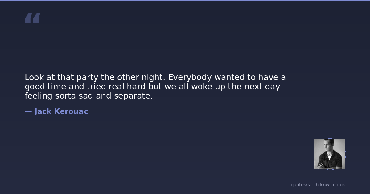 Look at that party the other night. Everybody wanted to have a good time and tried real hard but we all woke up the next day feeling sorta sad and separate.