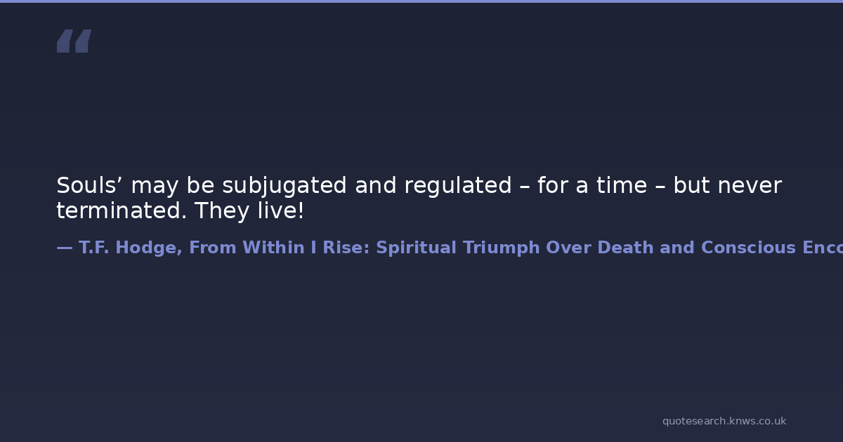 Souls’ may be subjugated and regulated – for a time – but never terminated. They live!