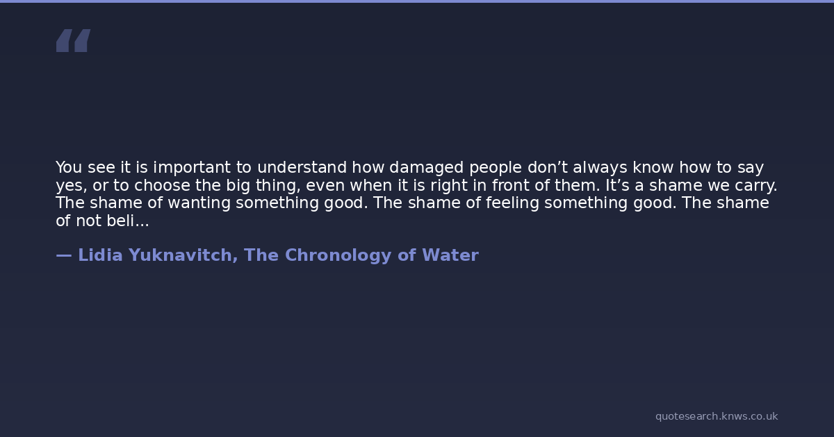 You see it is important to understand how damaged people don’t always know how to say yes, or to choose the big thing, even when it is right in front of them. It’s a shame we carry. The shame of wanting something good. The shame of feeling something good. The shame of not believing we deserve to stand in the same room in the same way as all those we admire. Big red As on our chests. I never thought to myself growing up, be a lawyer. An astronaut. The President. A scientist. A doctor. An architect. I didn’t even think, be a writer. Aspiration gets stuck in some people. It’s difficult to think yes. Or up. When all you feel is fight or run.