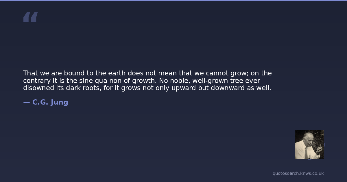 That we are bound to the earth does not mean that we cannot grow; on the contrary it is the sine qua non of growth. No noble, well-grown tree ever disowned its dark roots, for it grows not only upward but downward as well.