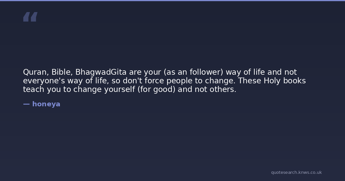 Quran, Bible, BhagwadGita are your (as an follower) way of life and not everyone's way of life, so don't force people to change. These Holy books teach you to change yourself (for good) and not others.