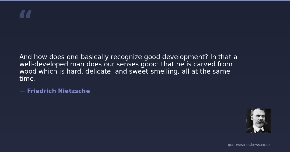 And how does one basically recognize good development? In that a well-developed man does our senses good: that he is carved from wood which is hard, delicate, and sweet-smelling, all at the same time.