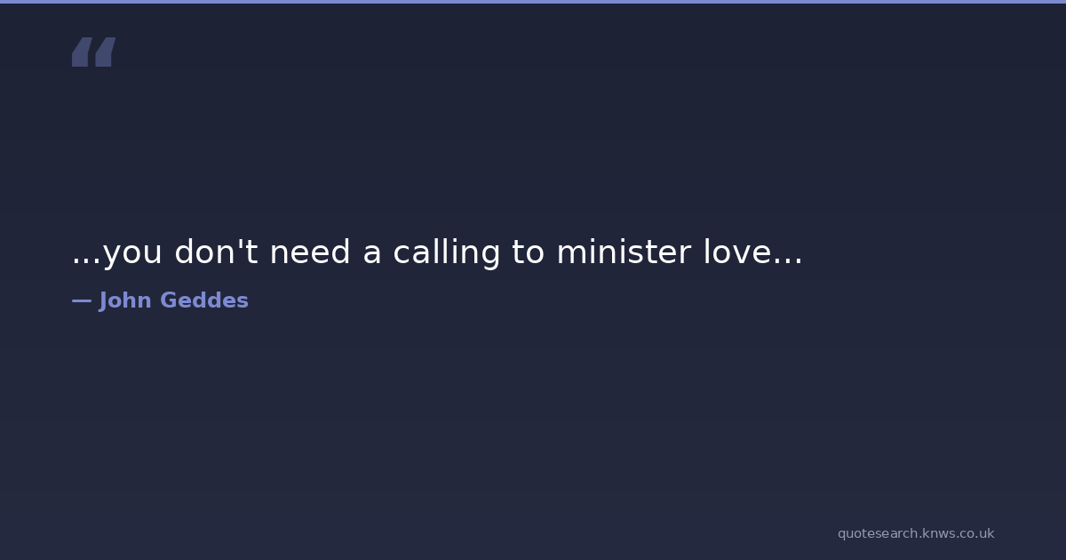 ...you don't need a calling to minister love... calling love minister wisdom Download Image Share on X Share on Facebook Copy Link