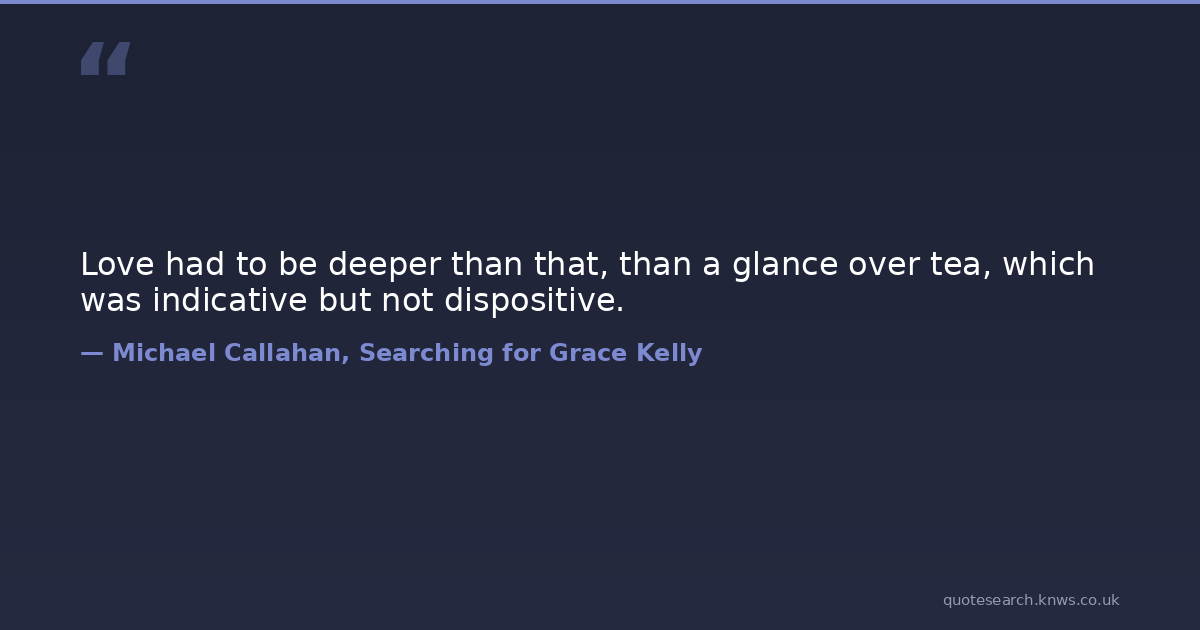 Love had to be deeper than that, than a glance over tea, which was indicative but not dispositive.
