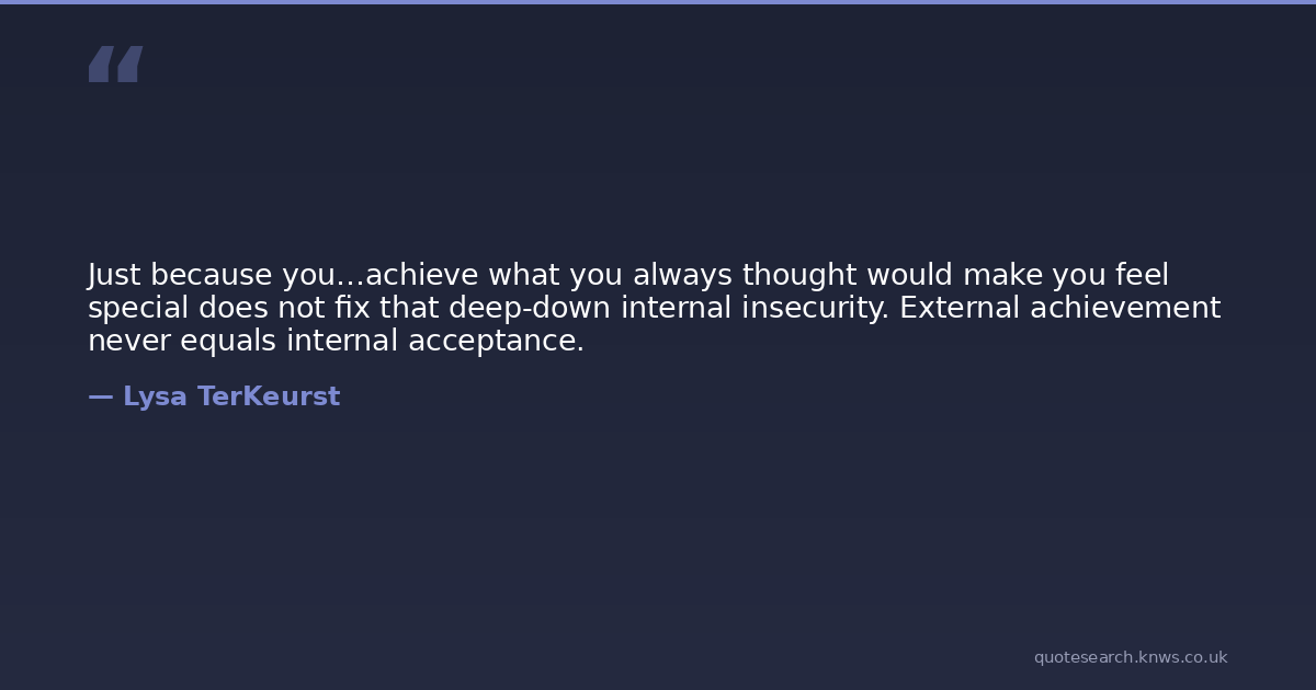 Just because you…achieve what you always thought would make you feel special does not fix that deep-down internal insecurity. External achievement never equals internal acceptance.