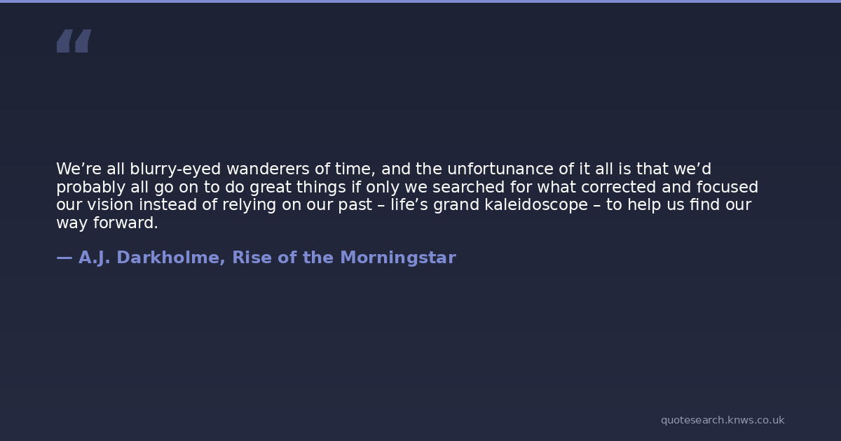 We’re all blurry-eyed wanderers of time, and the unfortunance of it all is that we’d probably all go on to do great things if only we searched for what corrected and focused our vision instead of relying on our past – life’s grand kaleidoscope – to help us find our way forward.