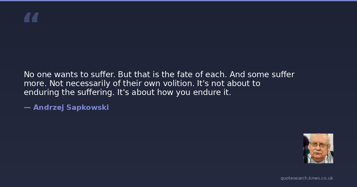 No one wants to suffer. But that is the fate of each. And some suffer more. Not necessarily of their own volition. It's not about to enduring the suffering. It's about how you endure it.