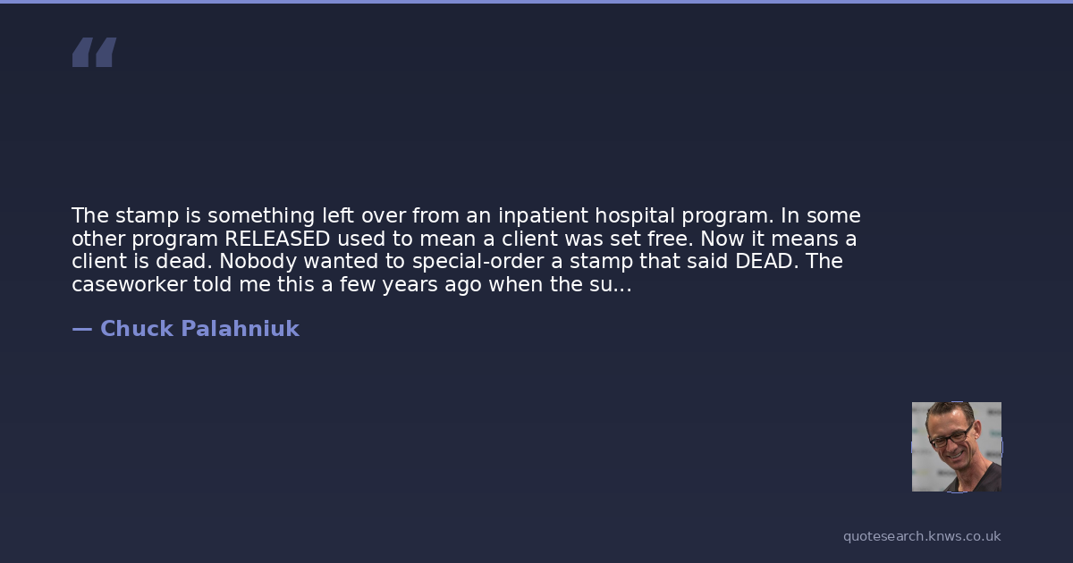 The stamp is something left over from an inpatient hospital program. In some other program RELEASED used to mean a client was set free. Now it means a client is dead. Nobody wanted to special-order a stamp that said DEAD. The caseworker told me this a few years ago when the suicides started back up again. Ashes to ashes. Dust to dust. This is how things get recycled.