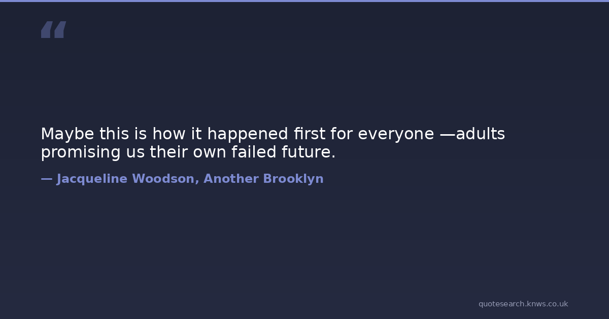 Maybe this is how it happened first for everyone —adults promising us their own failed future.