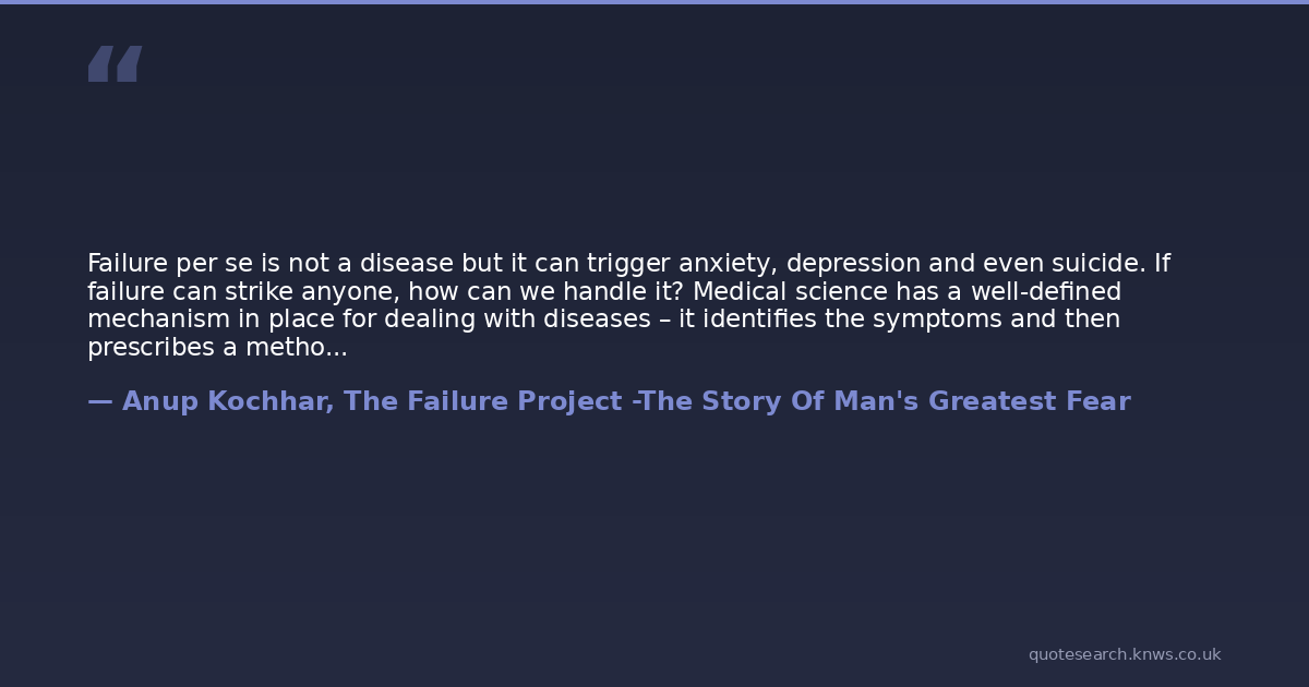Failure per se is not a disease but it can trigger anxiety, depression and even suicide. If failure can strike anyone, how can we handle it? Medical science has a well-defined mechanism in place for dealing with diseases – it identifies the symptoms and then prescribes a methodology for their management. Psychologists and Psychiatrists have management practices for dealing with anxiety and depression. But do we have a method for dealing with failure?