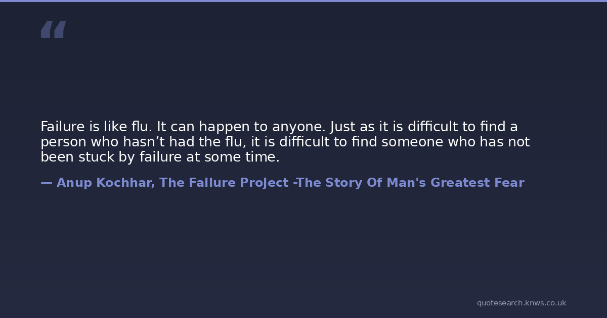 Failure is like flu. It can happen to anyone. Just as it is difficult to find a person who hasn’t had the flu, it is difficult to find someone who has not been stuck by failure at some time.