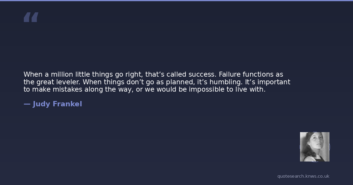 When a million little things go right, that’s called success. Failure functions as the great leveler. When things don’t go as planned, it’s humbling. It’s important to make mistakes along the way, or we would be impossible to live with.