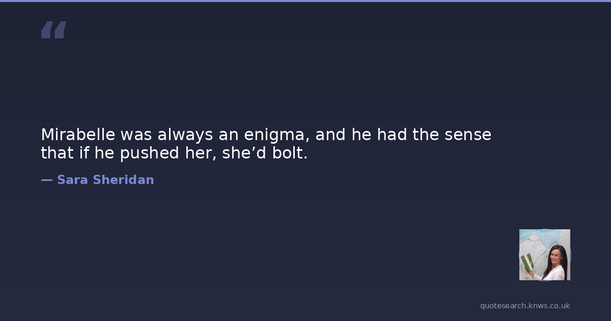 Mirabelle was always an enigma, and he had the sense that if he pushed her, she’d bolt.
