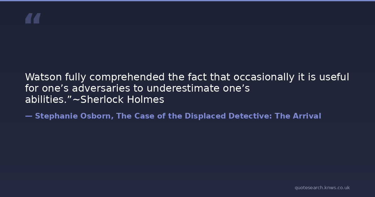 Watson fully comprehended the fact that occasionally it is useful for one’s adversaries to underestimate one’s abilities.”~Sherlock Holmes