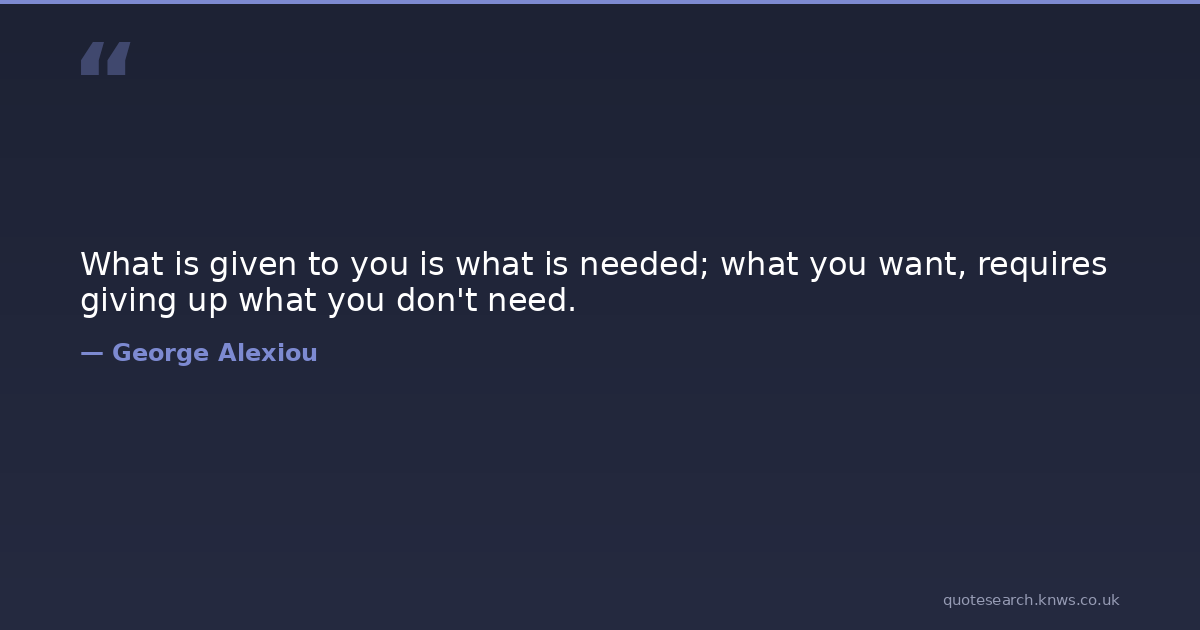 What is given to you is what is needed; what you want, requires giving up what you don't need.