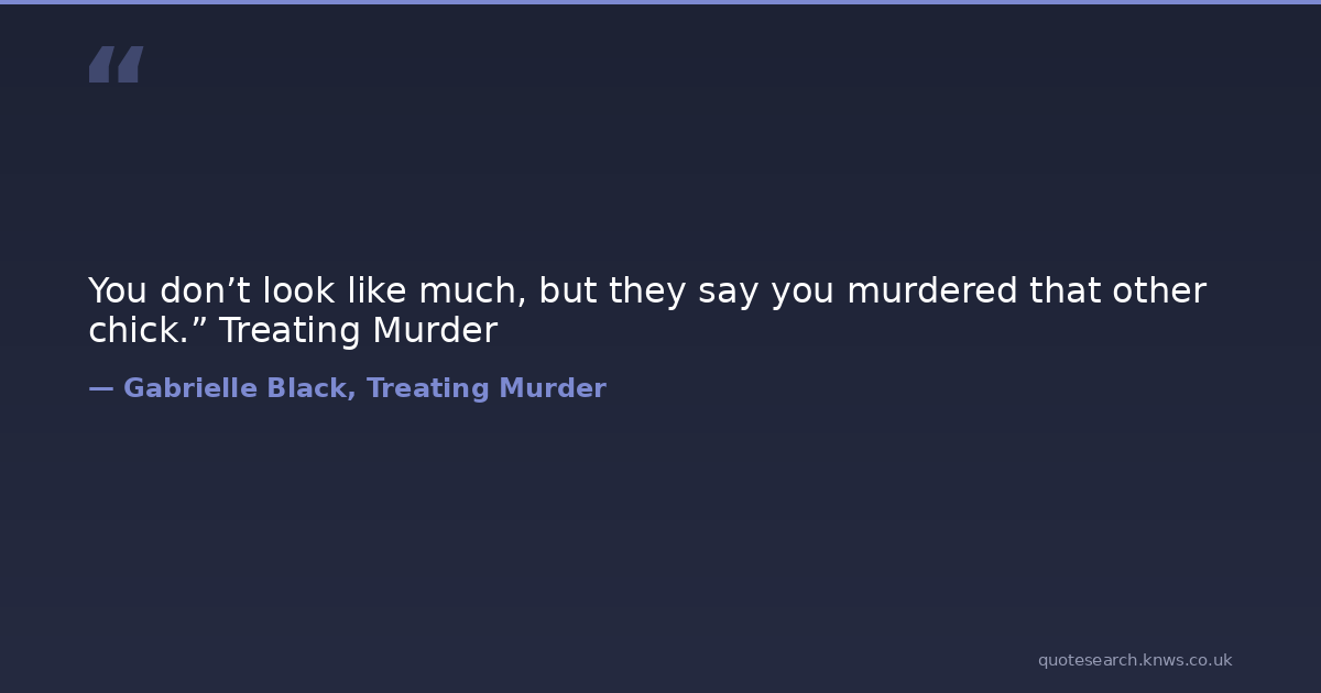 You don’t look like much, but they say you murdered that other chick.” Treating Murder