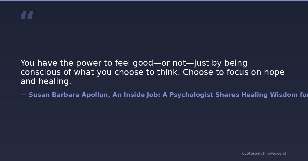 You have the power to feel good—or not—just by being conscious of what you choose to think. Choose to focus on hope and healing.
