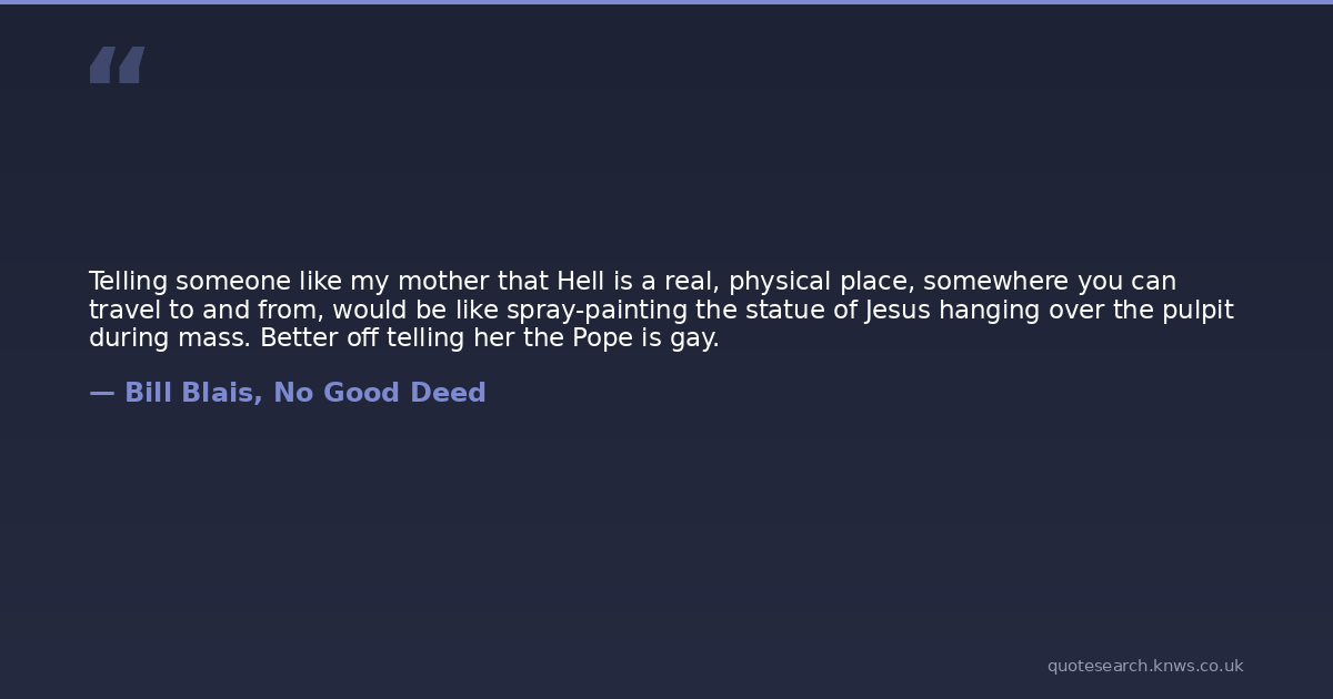 Telling someone like my mother that Hell is a real, physical place, somewhere you can travel to and from, would be like spray-painting the statue of Jesus hanging over the pulpit during mass. Better off telling her the Pope is gay.