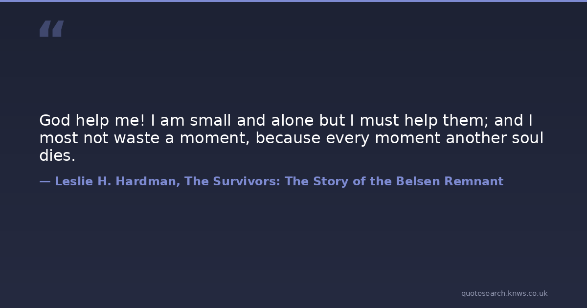 God help me! I am small and alone but I must help them; and I most not waste a moment, because every moment another soul dies.