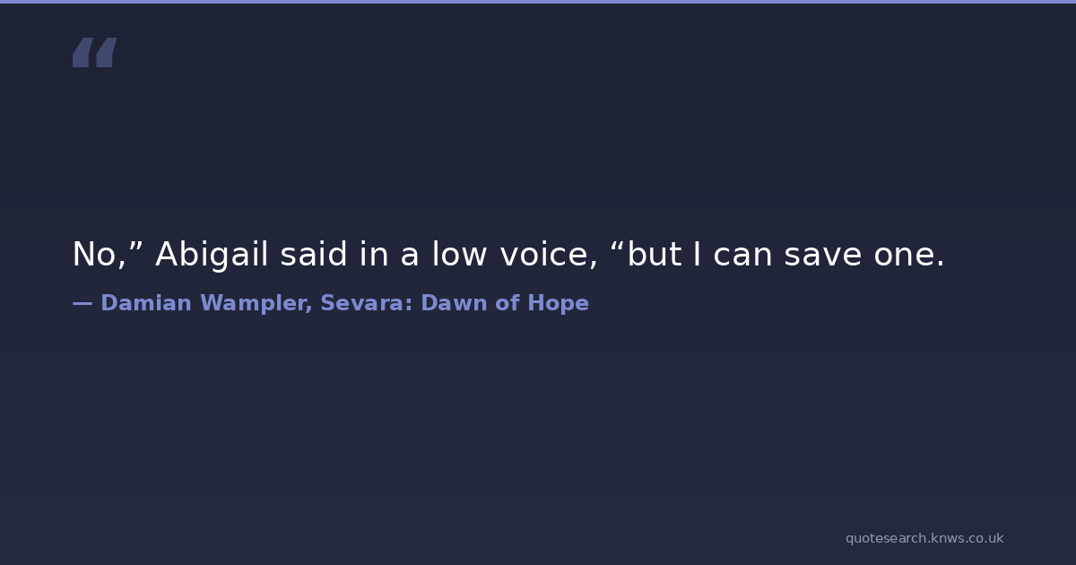 No,” Abigail said in a low voice, “but I can save one. young-adult Download Image Share on X Share on Facebook Copy Link