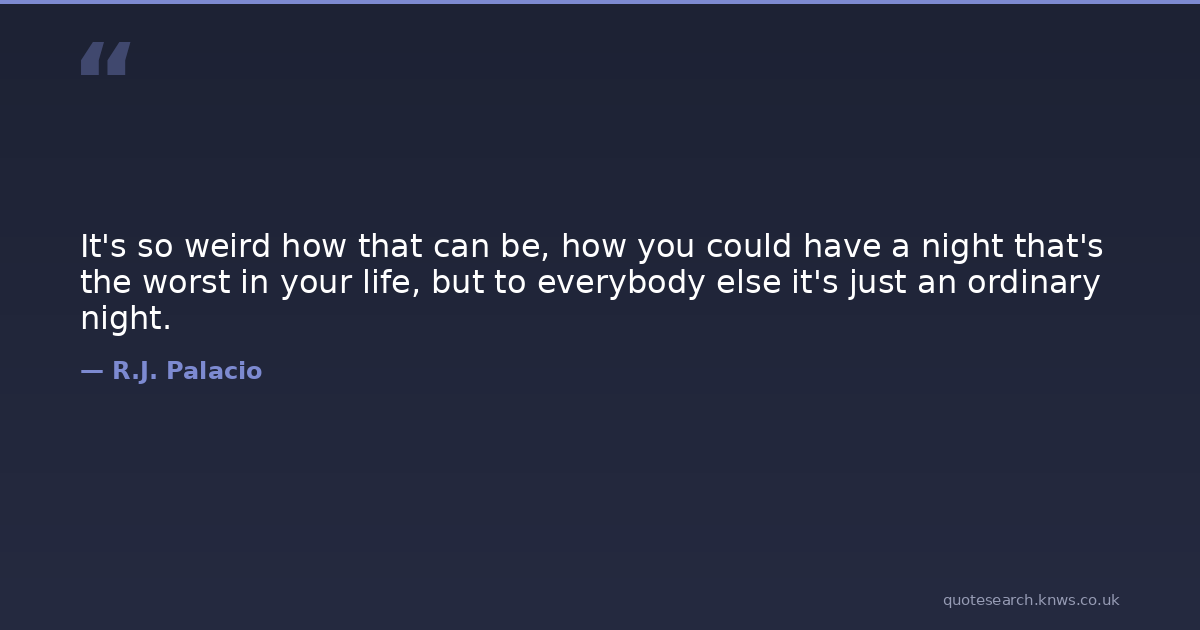 It's so weird how that can be, how you could have a night that's the worst in your life, but to everybody else it's just an ordinary night.