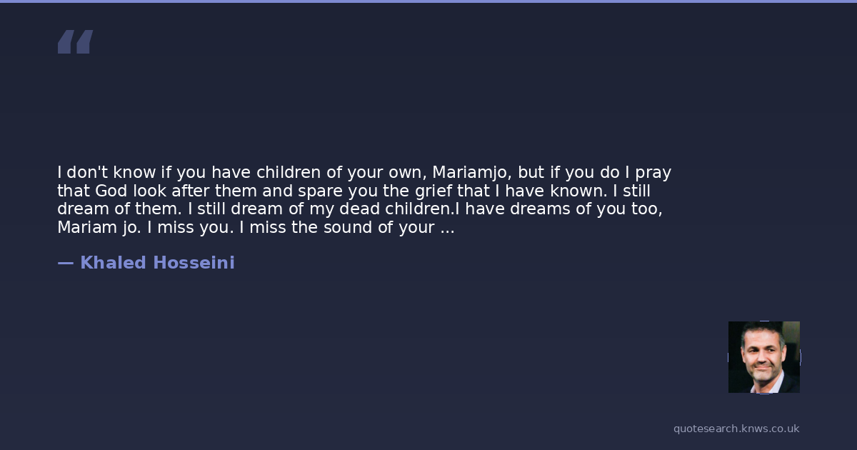 I don't know if you have children of your own, Mariamjo, but if you do I pray that God look after them and spare you the grief that I have known. I still dream of them. I still dream of my dead children.I have dreams of you too, Mariam jo. I miss you. I miss the sound of your voice, your laughter. I miss reading to you, and all those times we fished together. Do you remember all those times we fished together? You were a good daughter, Mariam jo, and I cannot ever think of you without feeling shame and regret. Regret When it comes to you, Mariamjo, I have oceans of it. I regret that I did not see you the day you came to Herat. I regret that I did not open the door and take you in. I regret that I did not make you a daughter to me, that l let you live in that place for all those years. And for what? Fear of losing face? Of staining my so called good name? How little those things matter to me now after all the loss, all the terrible things I have seen in this cursed war. But now, of course, it is too late. Perhaps this is just punishment for those who have been heartless, to understand only when nothing can be undone. Now all I can do is say that you were a good daughter, Mariamjo, and that I never deserved you. Now all I can do is ask for yourforgiveness. So forgive me, Mariamjo. Forgive me. Forgive me. Forgive me.