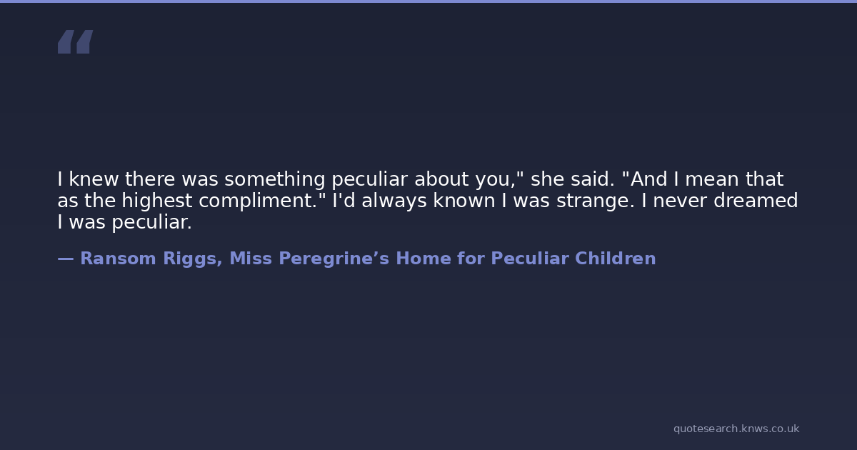 I knew there was something peculiar about you," she said. "And I mean that as the highest compliment." I'd always known I was strange. I never dreamed I was peculiar.