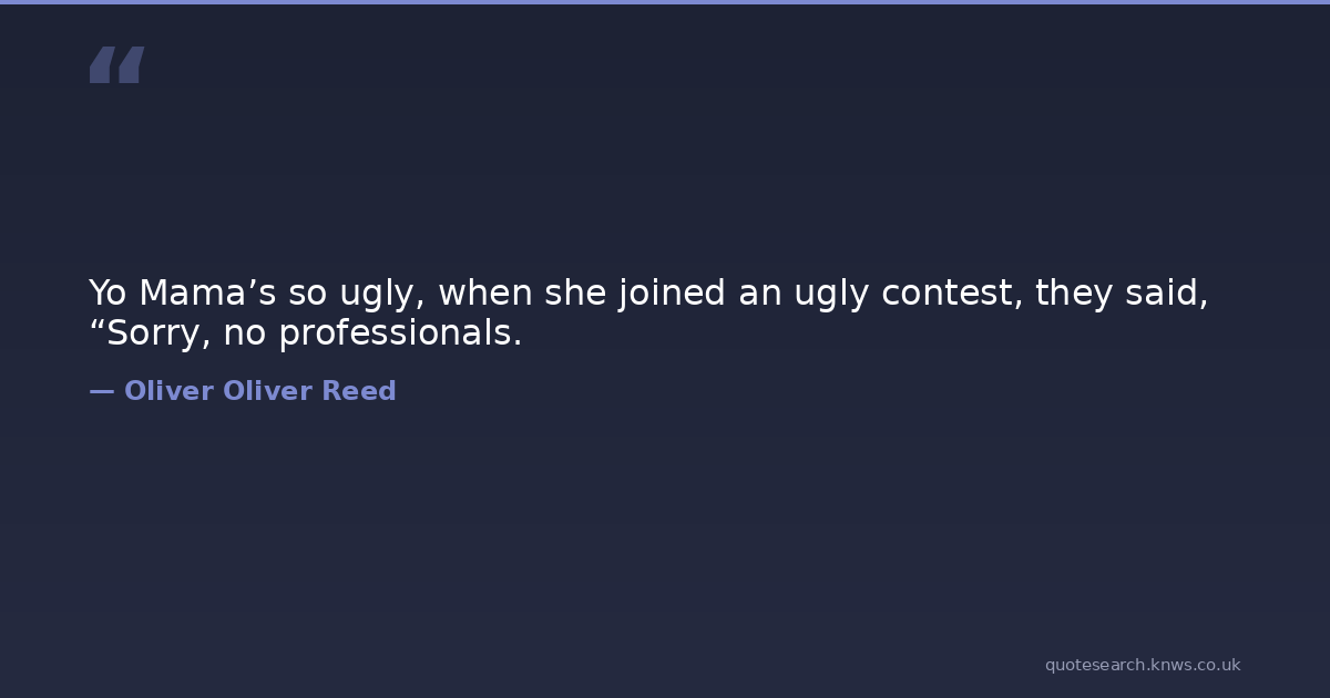 Yo Mama’s so ugly, when she joined an ugly contest, they said, “Sorry, no professionals.