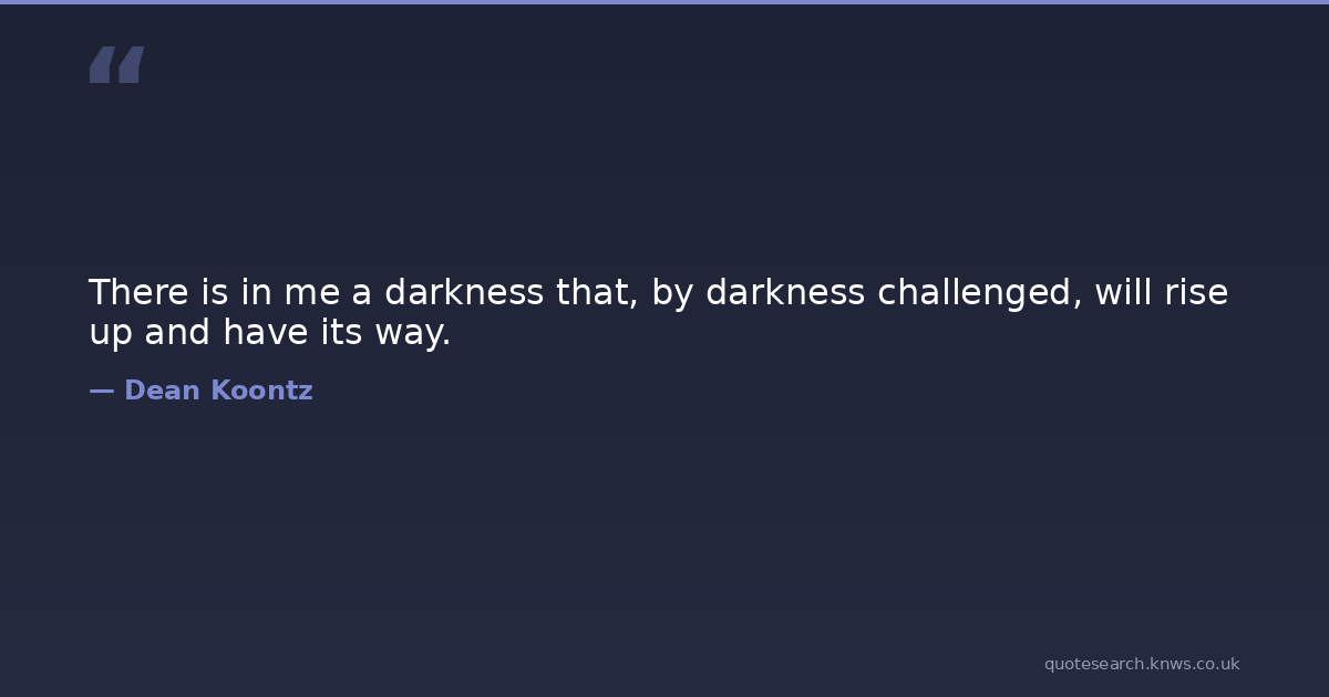 There is in me a darkness that, by darkness challenged, will rise up and have its way.
