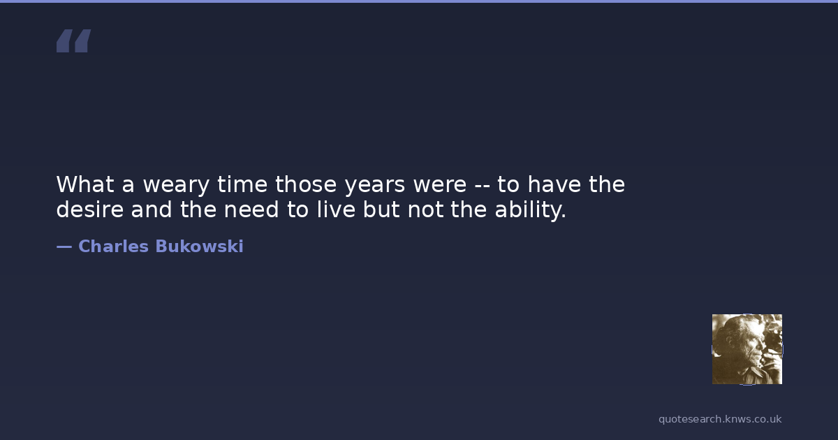 Charles Bukowski was a 20th-century American writer. Henry Charles Bukowski was a German-American poet, novelist, and short story writer. His writing was influenced by the social, cultural, and economic ambience of his adopted home city of Los Angeles. Read more on Wikipedia →
