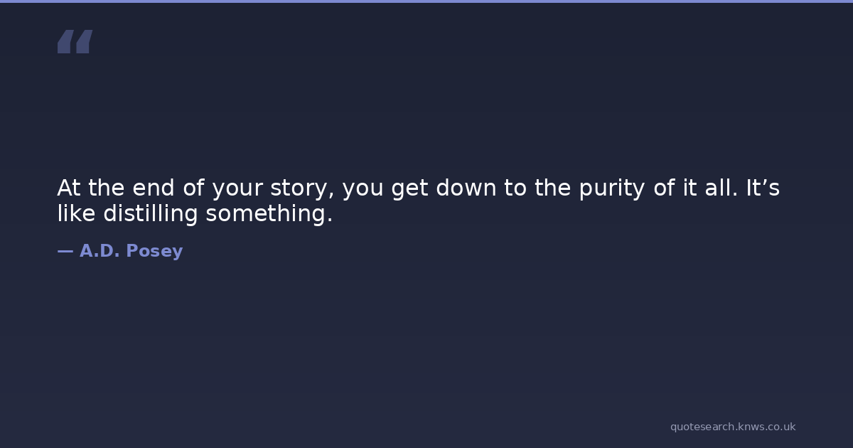 At the end of your story, you get down to the purity of it all. It’s like distilling something.