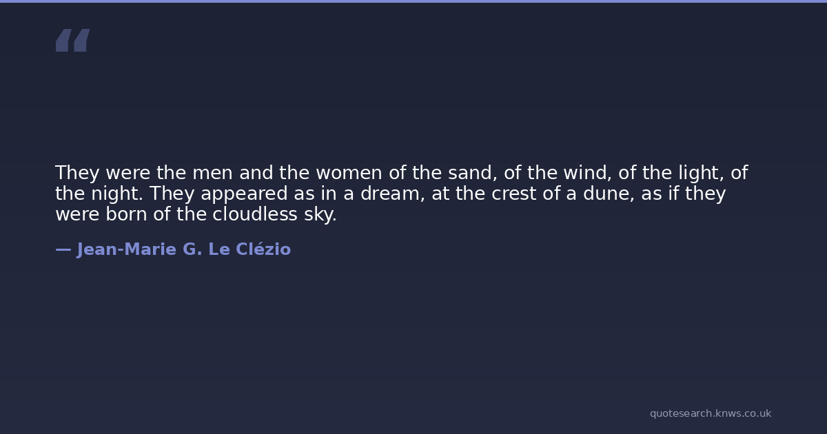 They were the men and the women of the sand, of the wind, of the light, of the night. They appeared as in a dream, at the crest of a dune, as if they were born of the cloudless sky.