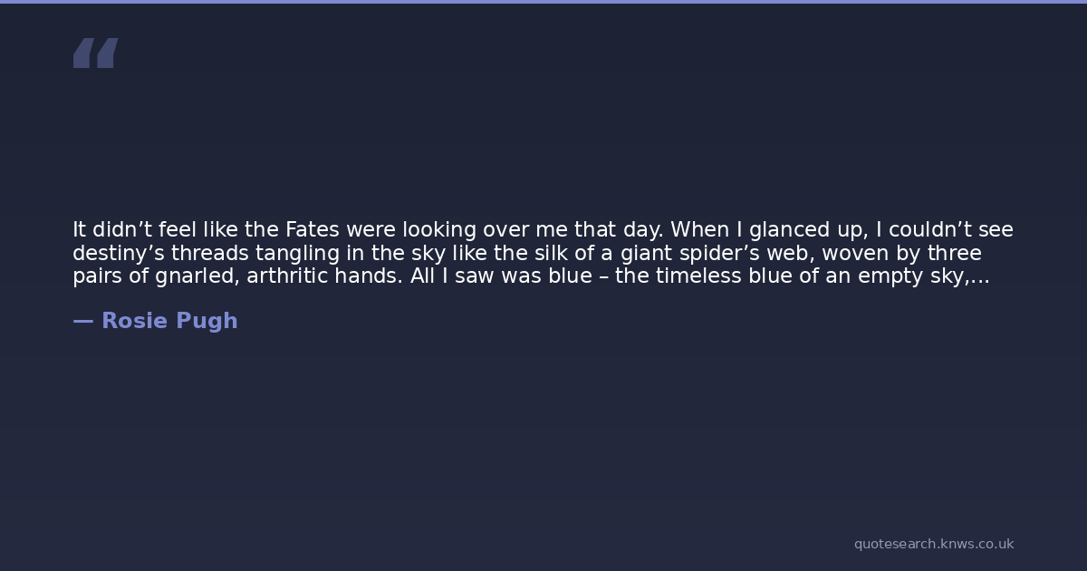 It didn’t feel like the Fates were looking over me that day. When I glanced up, I couldn’t see destiny’s threads tangling in the sky like the silk of a giant spider’s web, woven by three pairs of gnarled, arthritic hands. All I saw was blue – the timeless blue of an empty sky, and the restless blue of a rough ocean.
