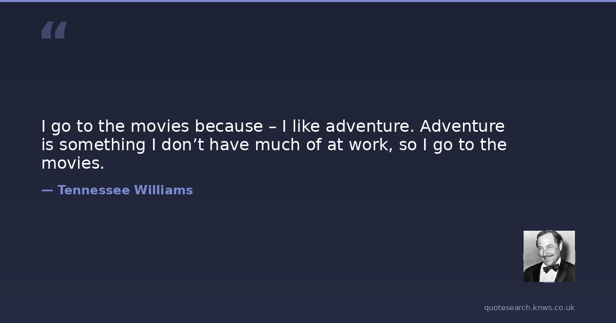 I go to the movies because – I like adventure. Adventure is something I don’t have much of at work, so I go to the movies.