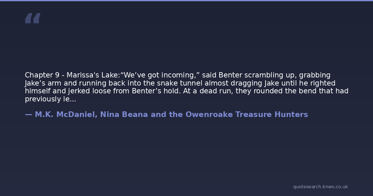 Chapter 9 - Marissa's Lake:“We’ve got incoming,” said Benter scrambling up, grabbing Jake’s arm and running back into the snake tunnel almost dragging Jake until he righted himself and jerked loose from Benter’s hold. At a dead run, they rounded the bend that had previously led to the red sky. The crashing noise of falling rock echoed by them and they backed up to the side of the tunnel. Benter held his finger up to his mouth. He slowly edged forward to peek back beyond the bend. The colossal dragon tried to dig and burn its way into the tunnel, but it was ten times the size of the tunnel opening. The beast inhaled a deep breath, seemingly to suck every bit of air from the tunnel. Benter felt himself breathe harder, becoming lightheaded. The dragon continued to inhale and Benter realized the exhale would be a huge fire bomb. “RUN!” yelled Benter, but Jake had read his mind and was already ahead of him running as fast as he could. Within seconds of their exit the dragon released the fire missile and great licking flames raced towards them in a hungry fervor.