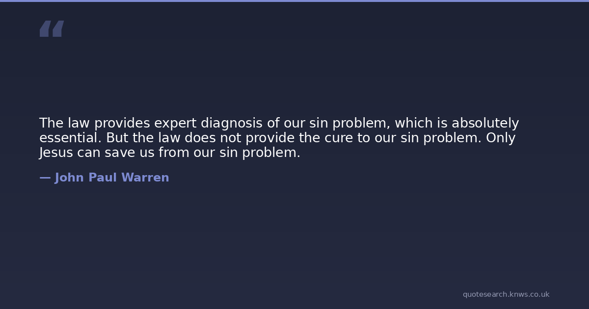 The law provides expert diagnosis of our sin problem, which is absolutely essential. But the law does not provide the cure to our sin problem. Only Jesus can save us from our sin problem.