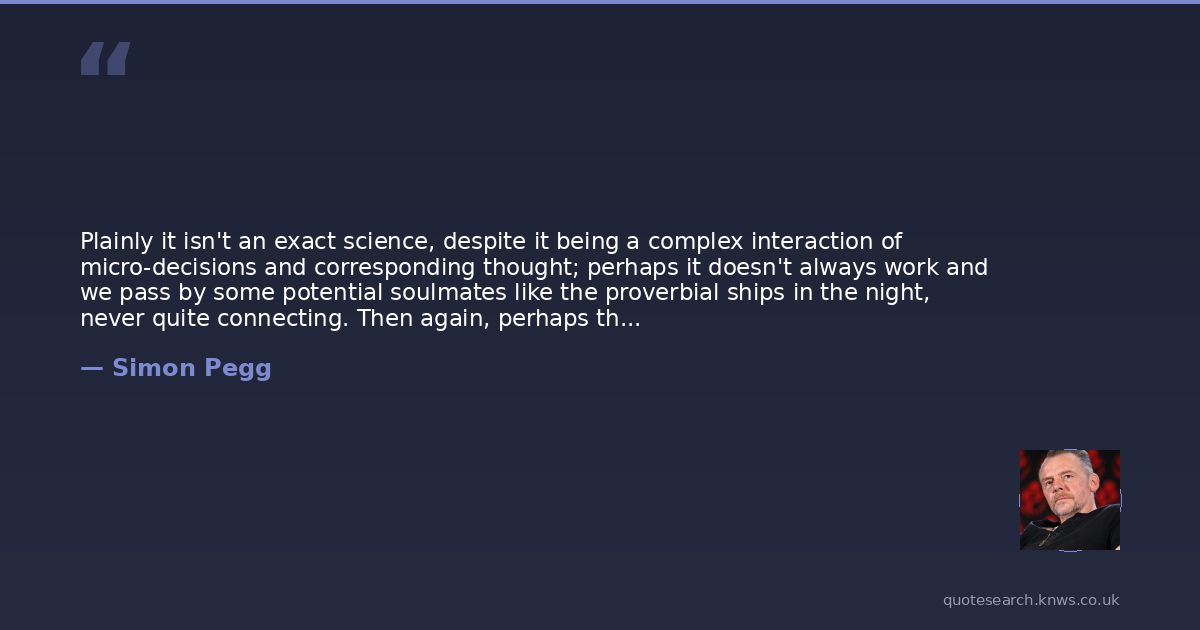Plainly it isn't an exact science, despite it being a complex interaction of micro-decisions and corresponding thought; perhaps it doesn't always work and we pass by some potential soulmates like the proverbial ships in the night, never quite connecting. Then again, perhaps the system is tenacious and continues to run like a computer program on infinite loop, so that if at first you don't meet, you are drawn back together for another try.