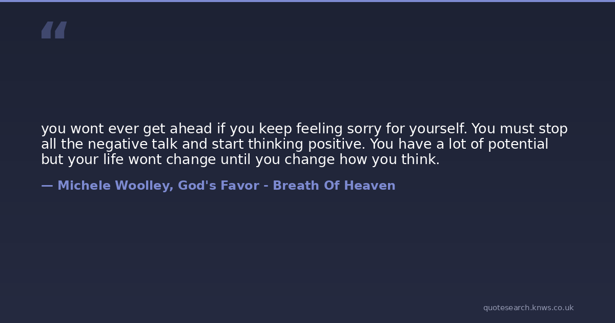 you wont ever get ahead if you keep feeling sorry for yourself. You must stop all the negative talk and start thinking positive. You have a lot of potential but your life wont change until you change how you think.