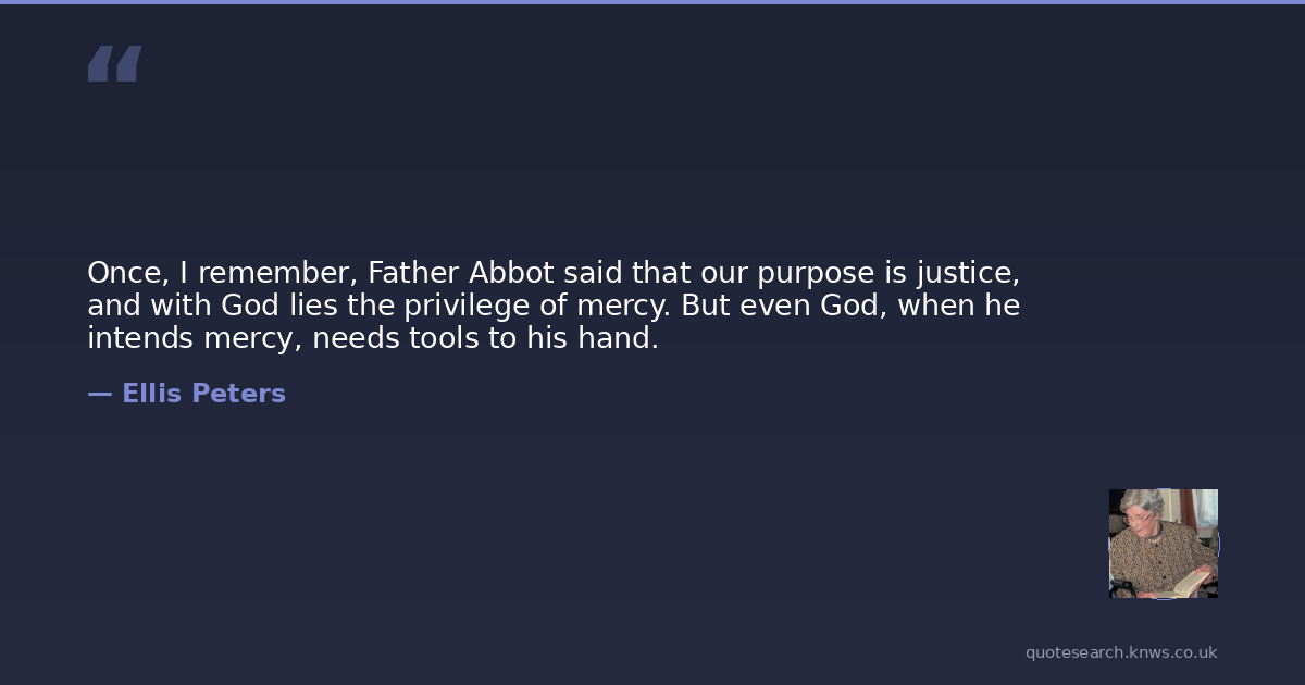 Once, I remember, Father Abbot said that our purpose is justice, and with God lies the privilege of mercy. But even God, when he intends mercy, needs tools to his hand.