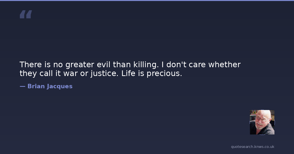 There is no greater evil than killing. I don't care whether they call it war or justice. Life is precious.