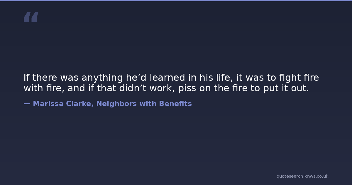 If there was anything he’d learned in his life, it was to fight fire with fire, and if that didn’t work, piss on the fire to put it out.